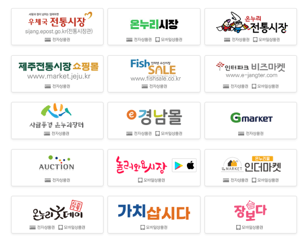 온누리 상품권 온라인 사용처에서는 모바일상품권과 전자상품권 사용만 가능합니다. 사용가능 온누리 상품권 종류가 사이트 이름아래 적혀 있으니 확인 후 물건 구매 하시기 바랍니다.
