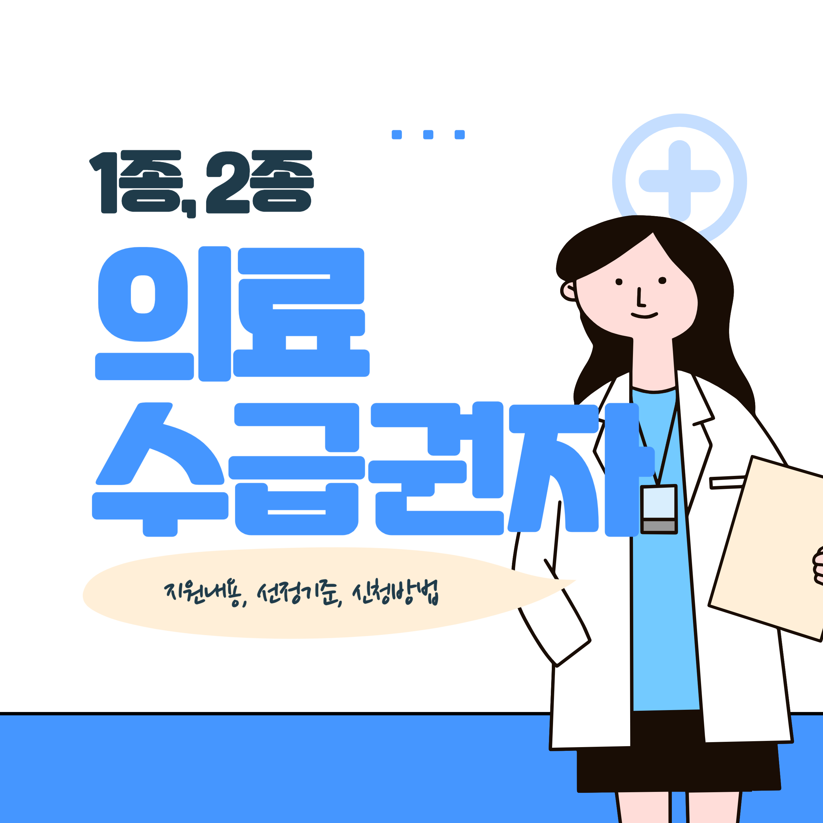 이때 의료급여 수급자는 1종 2종으로 나누어져 자기부담금에 차이가 납니다. 각각의 지원내용은 어떻게 다른지 자세히 알아볼게요.